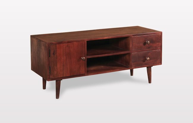 Mid-Century Solid Wood TV Unit with Cabinet, Drawers & Open Shelving