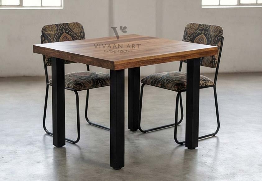 Solid Wood Dining Table with Metal Legs | Modern Industrial 2–4 Seater